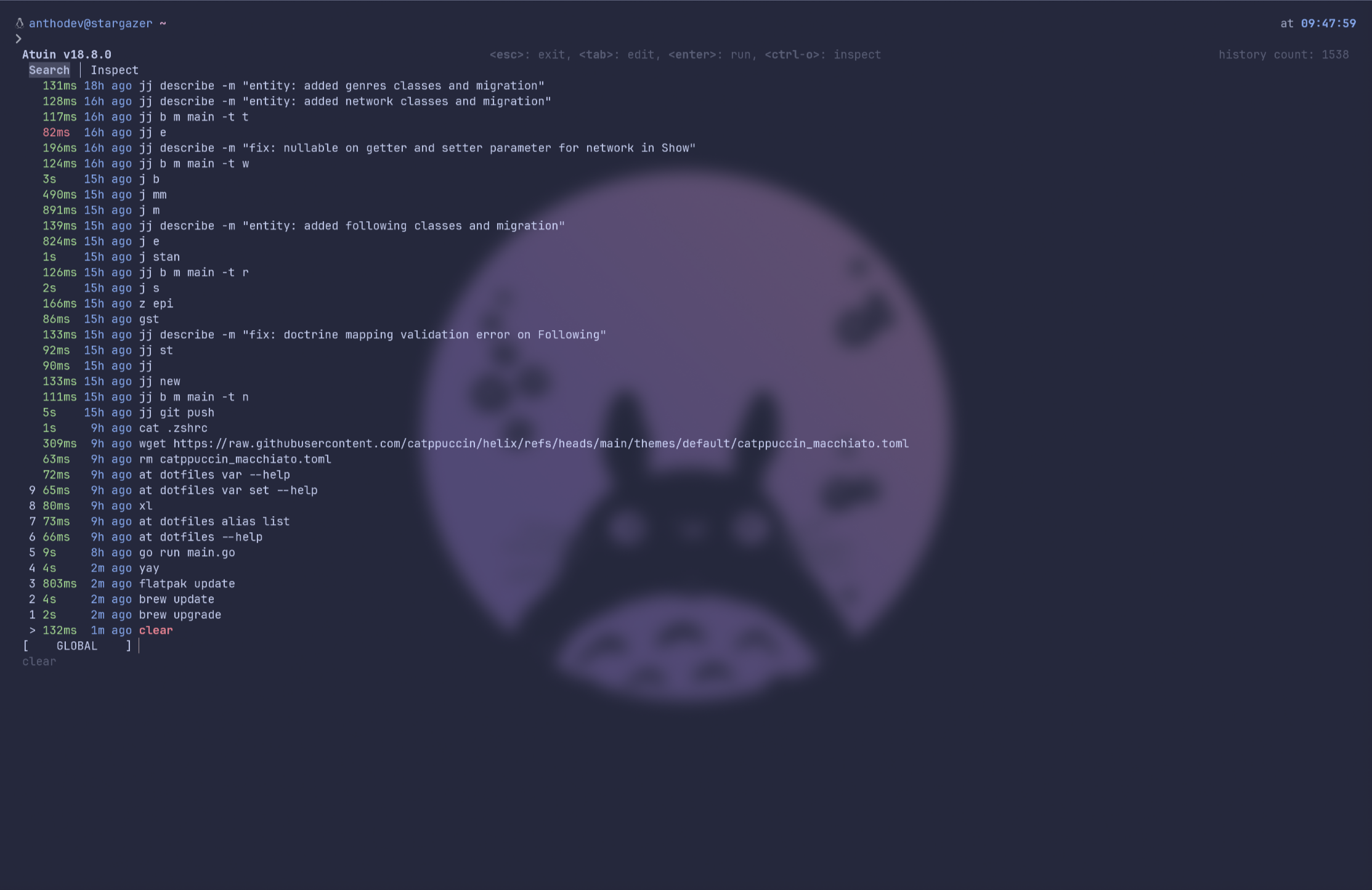 pour naviguer dans vos précédentes commandes, c'est Atuin qui s'affichera. Si vous utilisez zsh